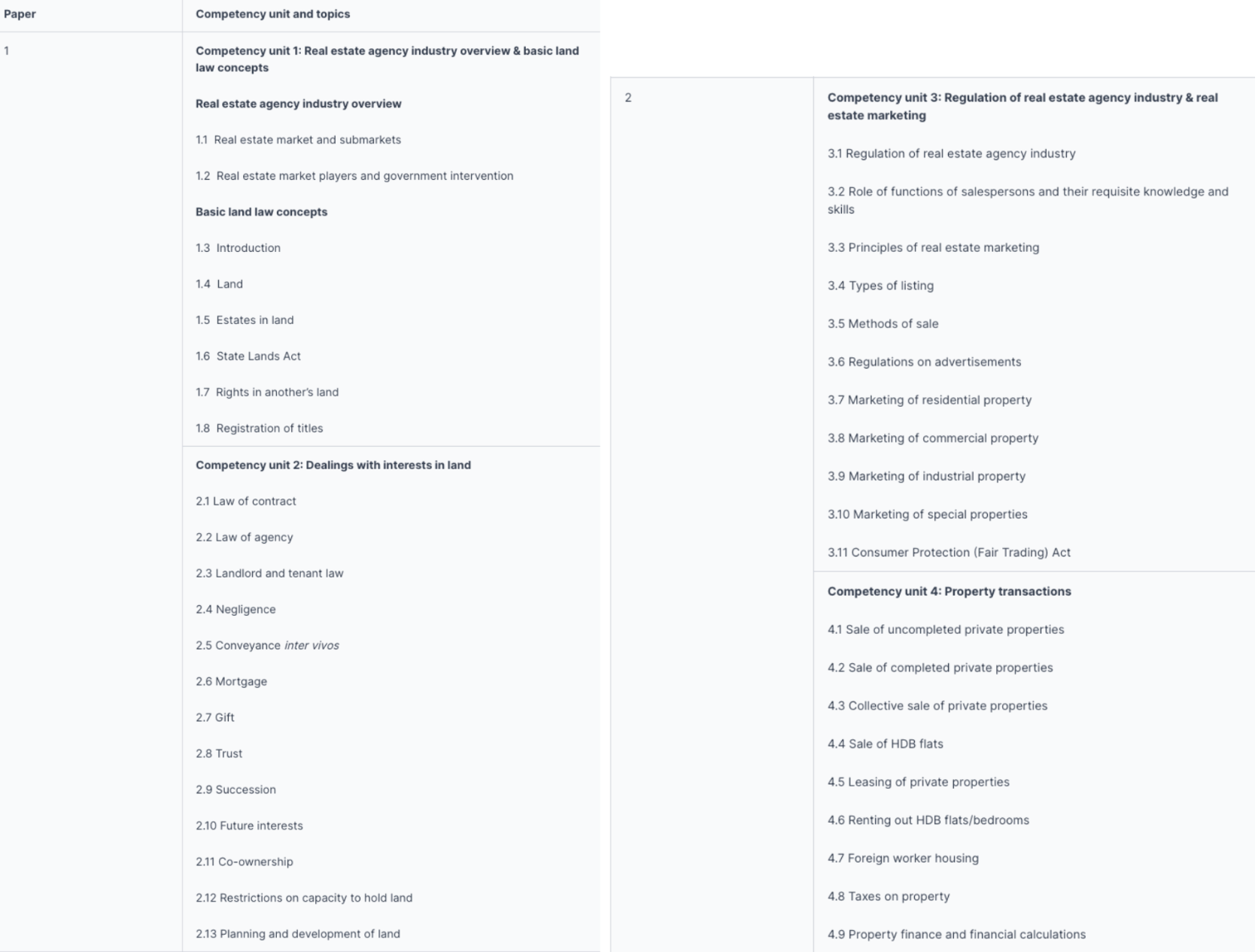 關於 RES 的考試形式、時間安排等資訊,網路上很多地方都能搜尋到,可以參考 CEA 官網 詳細說明。簡單來說如果想在新加坡登記為合法房仲,就需要通過 RES 房仲考試的兩個科目:Paper 1 及 Paper 2。
