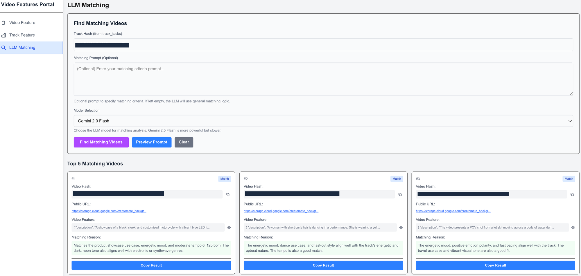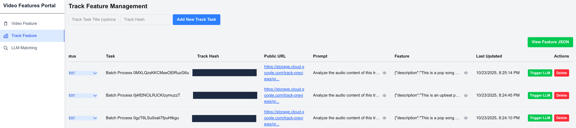 - 點擊按鈕,觸發調用 LLM 分析影片特徵,儲存在資料庫